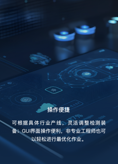可根據(jù)具體行業(yè)產(chǎn)線,靈活調(diào)整檢測(cè)裝備;GUI界面操作便利,非專業(yè)工程師也可以輕松進(jìn)行最優(yōu)化作業(yè)。